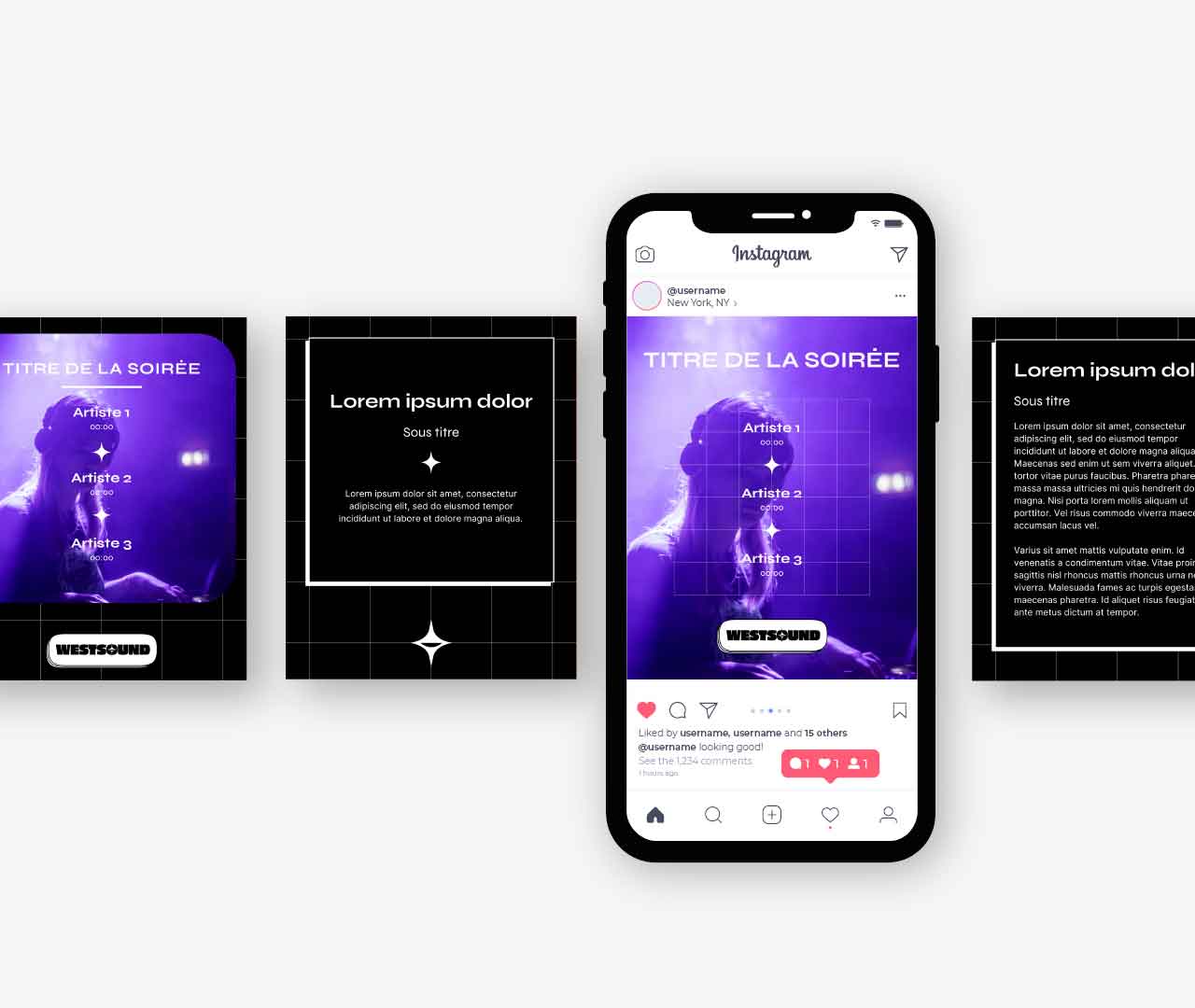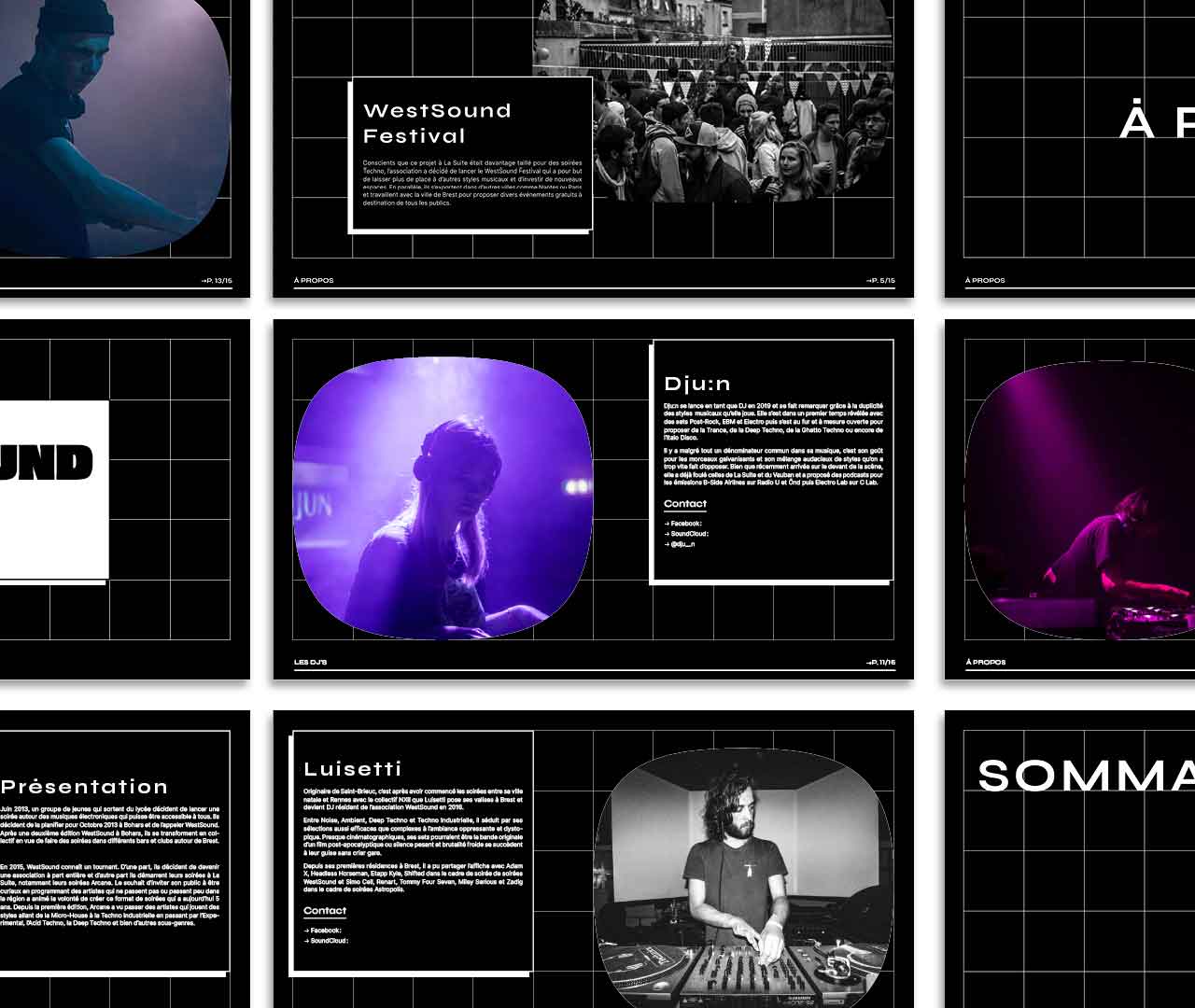 Après une décennie à animer la nuit brestoise, le collectif de musique électronique Westsound souhaitait donner un nouveau souffle à son identité visuelle. Nous avons conçu ensemble un univers graphique minimaliste et dynamique, inspiré par les reflets de la rade, pour accompagner le collectif dans ses prochaines aventures.